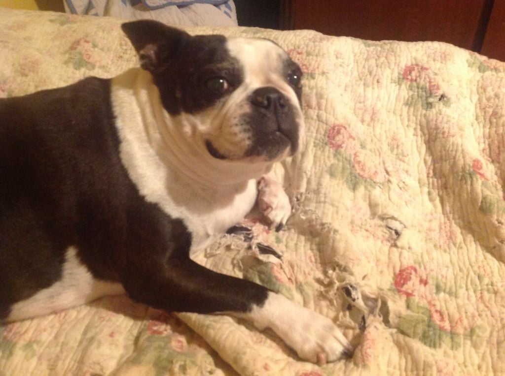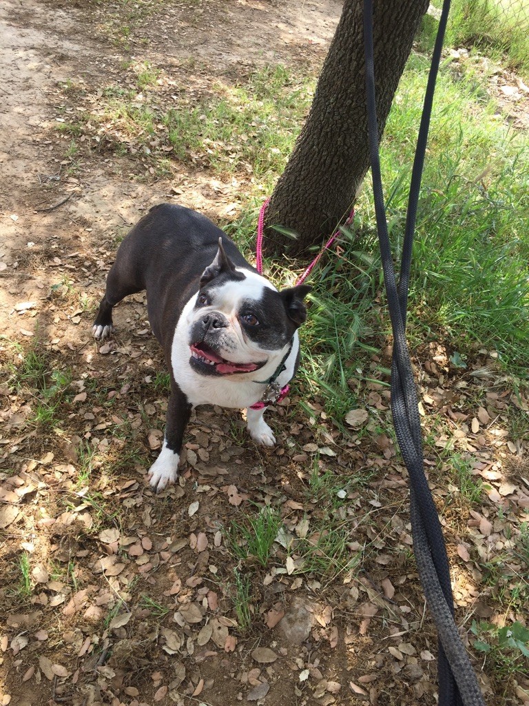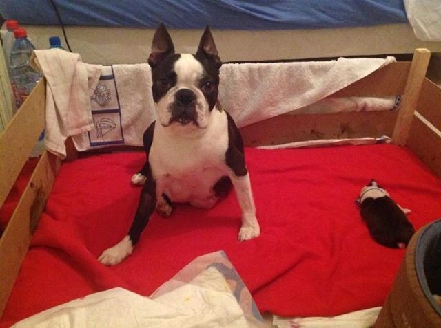 Etincelle est notre premiere boston..difficile d'expliquer l'amour que nous lui portons, c'est notre fille. Nous voulions juste un petit d'elle... et puis nous avons gardé 4.. des minis Etincelle... tous differents. Notre chienne a su gerer sa meute et elle continue avec fermeté et douceur a être la cheftaine. Elle vieillit tout doucement.. du blanc sur sa face apparait...